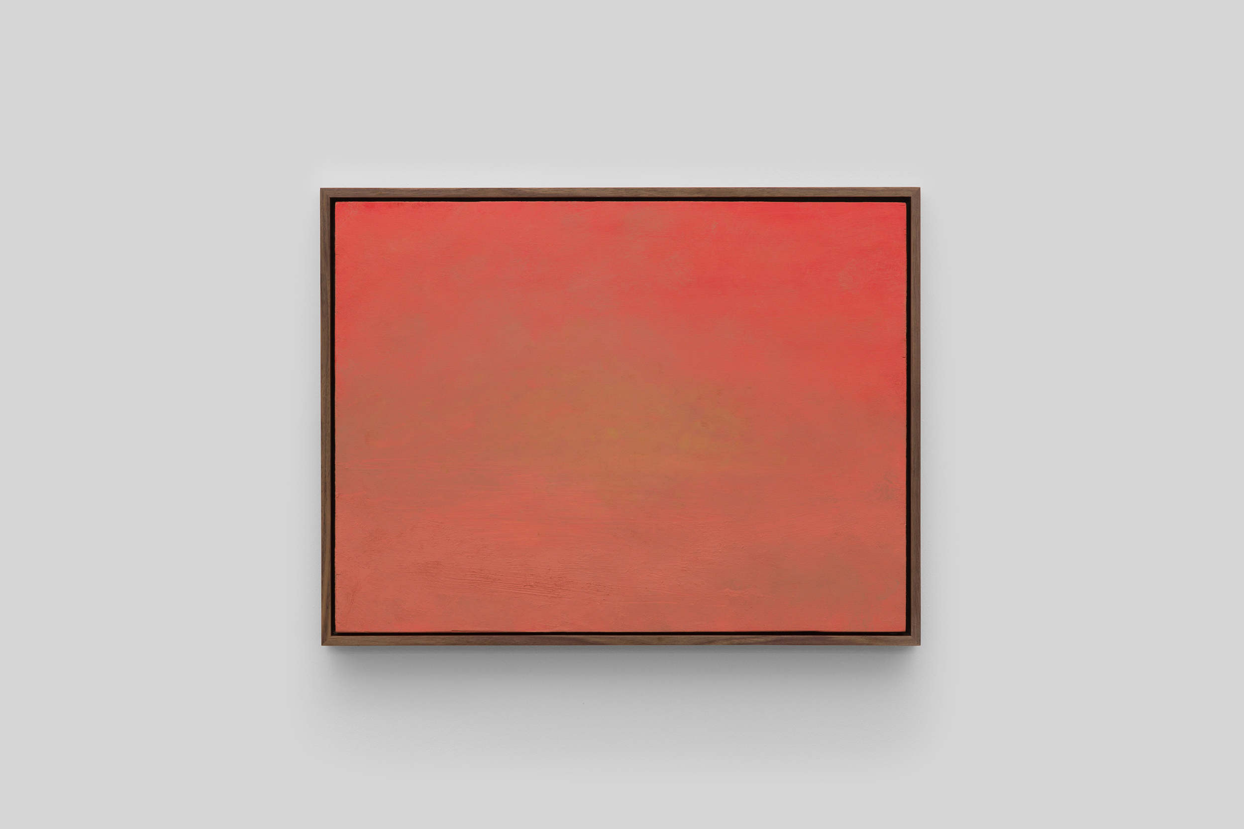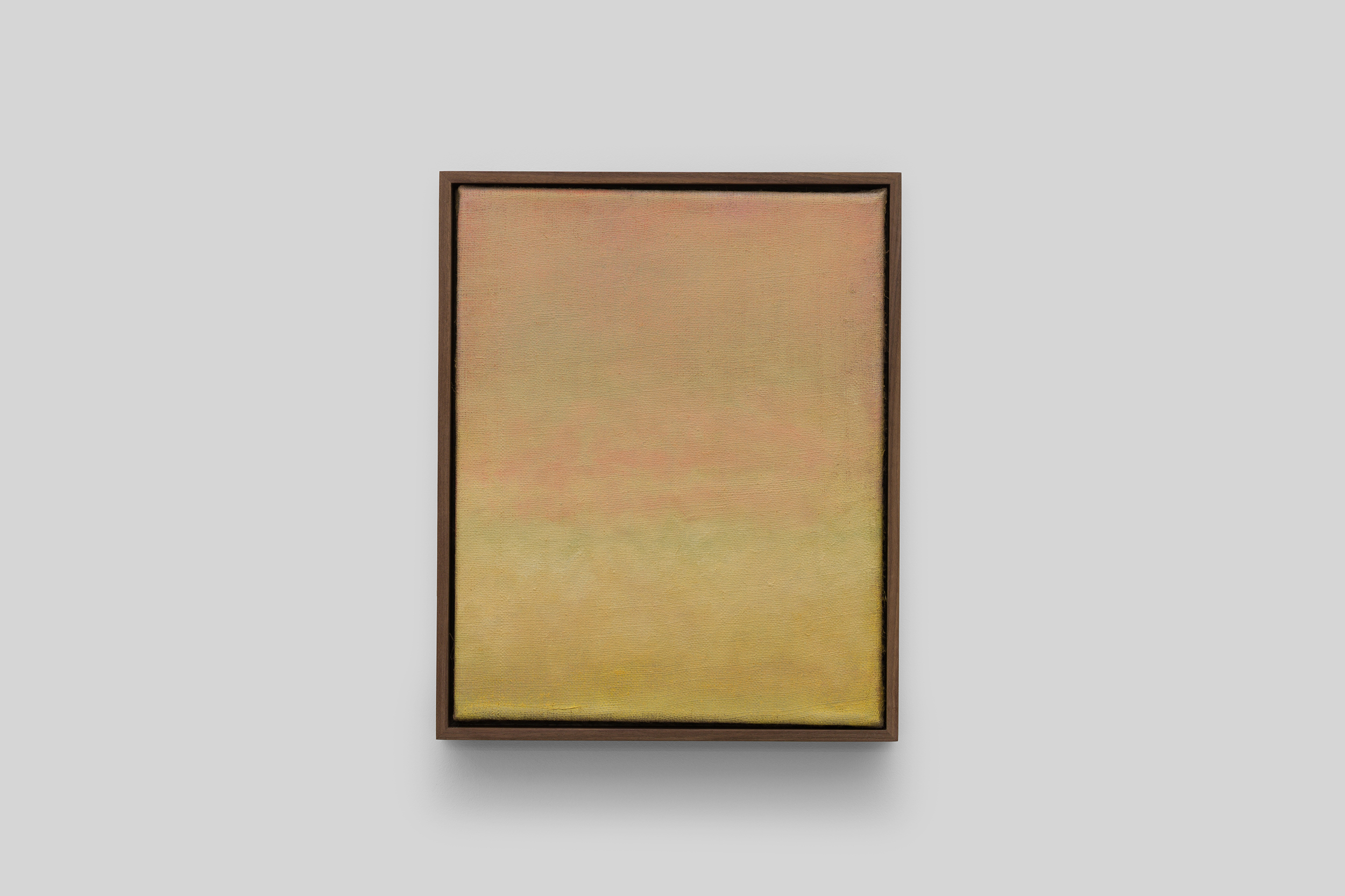 The diaristic nature of the work is not a strict empirical recording of what the artist sees. In fact, the paintings capture ephemeral moments, like a sunset fading behind a mountain, or a clear blue sky about to become overcast. Light is studied and translated from these locations over an extended period of time, meaning a single painting can take three years from conception to execution. So, the act of looking becomes a starting point for later realisation in the studio, where observation and memory become inextricably tied.